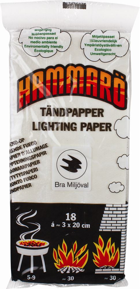 Aanmaakpapier van in petroleumstearine gedrenkt papier. Biologisch afbreekbaar.