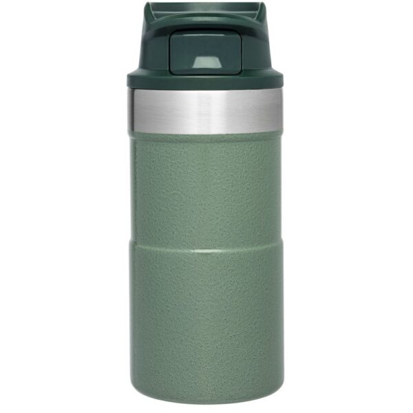 Het deksel met de speciaal ontworpen ’trigger-action button’ maakt deze thermoskan volledig morsbestendig en gemakkelijk te gebruiken met één hand. Het deksel is ontworpen met een drukknop, waarmee het mondstuk aan de bovenkant wordt geopend. Deze unieke eigenschap maakt deze Stanley reisbeker perfect voor onderweg.