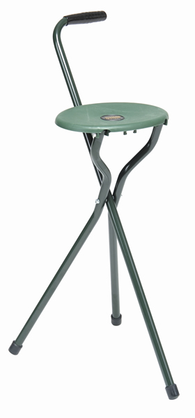De Trio driepotige zitstok is geschikt voor mensen die voor langere tijd willen zitten, of die een stabielere zit nodig hebben dan de traditionele zitstok. Het Trio-zitje is gemakkelijk te gebruiken als loophulpmiddel en biedt in geopende toestand een comfortabele ovale zit.