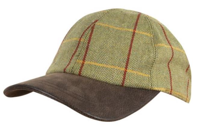 Woolblend tweed baseball cap met imitatiesuede klep. One size, messing gesp om de maat in te stellen.