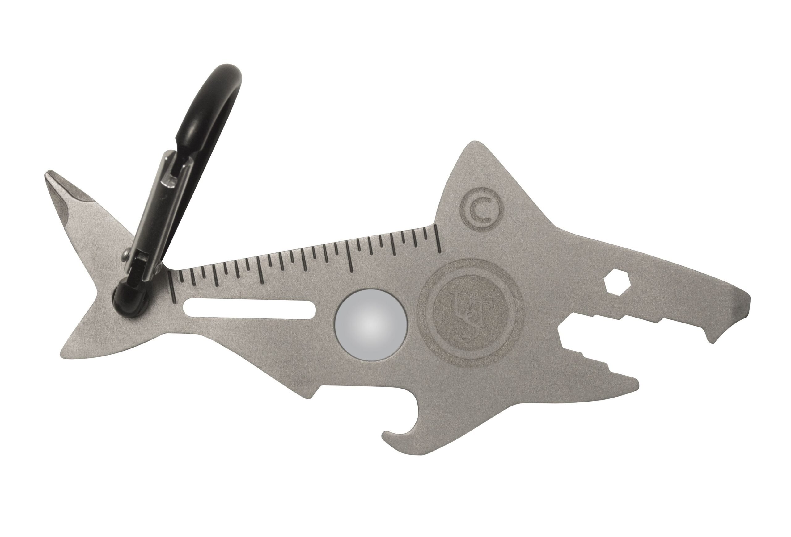 UST Shark Tool, A Long Multi-Tool. Weer zo’n grappige roestvrijstalen multitool van UST in zakformaat die de vorm heeft van een haai.