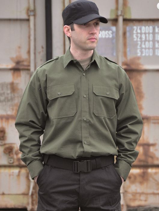 100% Katoenen Ripstop shirt. Twee borstzakken met klep en epauletten.