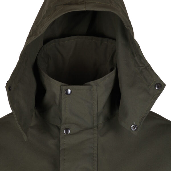 Ideaal jack voor buitenmensen zoals jagers, vogelaars en wandelaars. Gemaakt in Schotland van een dubbele laag Ventile waardoor het jack volkomen wind- en weatherproof is. Ademt beter dan een jack met een membraam. Volkomen geruisloos, kraakt en ruist niet. Krijgt op den duur net zo’n persoonlijk uiterlijk als een waxjas. De capuchon met memorydraad kan in de kraag gestopt worden. Geen naden op de schouders! Ruime mouwinzet waardoor het gewicht van het jack met zijn misschien wel volgepropte zakken (?) niet aan uw armen hangt wanneer u verrekijker, camera of geweer hanteert. De taille is aan te snoeren. Twee ruime zakken met klep, twee handwarmerzakken, 2 binnenzakken. 100% katoen, dus bijzonder millieuvriendelijk ook als hij na vele, vele jaren trouwe dienst ooit een keer weg moet.