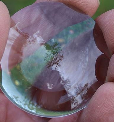 Vergrootglas van glas. Vergroot 6x. Dit is een geweldige lens voor het starten van vuur door zonne-ontsteking en werkt ook uitstekend als een gewone vergrootlens voor het lokaliseren van splinters, enz. En voor de kleine lettertjes..