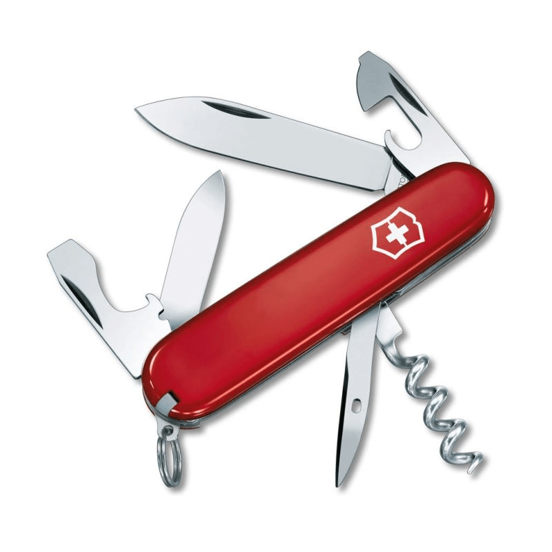 Victorinox Spartan zakmes. Een niet te groot zakmes met toch veel mogelijkheden: mes, kurkentrekker, flesopener, blikopener, kleine en grote schroevendraaier, kruiskop schroevendraaier, draadstripper, priem, pincet, tandenstoker, sleutelring.