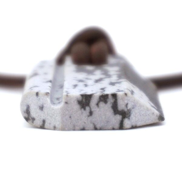 Elke steen is zorgvuldig gekozen, met de hand gesneden, geslepen en geboord. Elke slijpsteen hanger is hand-geknoopt met een unieke knoop die we de “Napoleonklauw” noemen en geïnspireerd is op Viking/Keltisch knoopwerk.