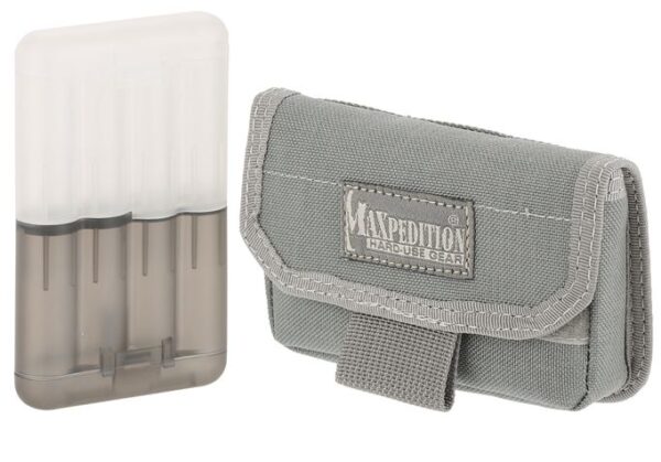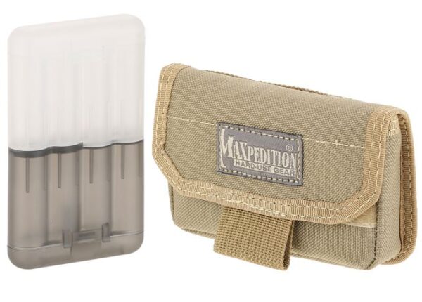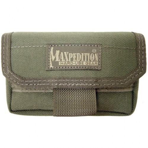 Handig klein tasje van Maxpedition. Komt met een speciale doos om reserve batterijen in te doen, maar heeft ook het juiste formaat voor een iPod, iPhone, 5 hagelpatronen kal.12, enz. Bevestiging: MOLLE systeem.