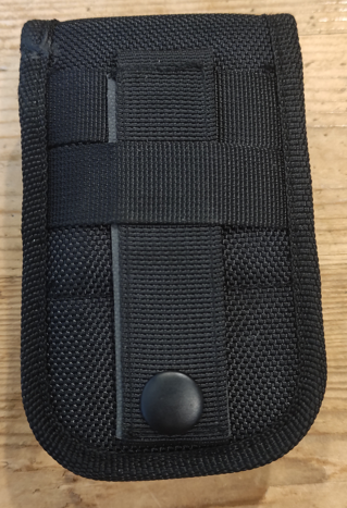 Stevige riemas voor een kleine vouwkijker. Met een elastisch binnenvakje voor een optiekdoekje. – MOLLE bevestigingssysteem – Binnenmaten: plm. 70 H x 55 B x 30 D – Drainage oog
