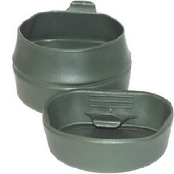 Opvouwbaar mokje. Past gemakkelijk in iedere jaszak. Voor de snelle bak koffie.