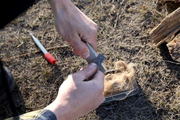 Bevat: magnesiumblok, vuurstaal, vuurstaalschraper, blaaspijpje, jute tondel en blikken opbergblik
