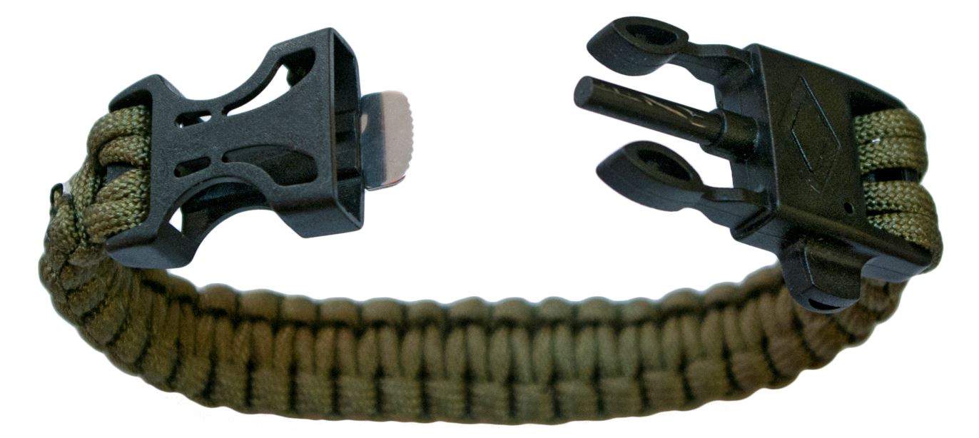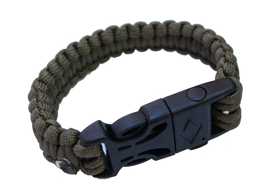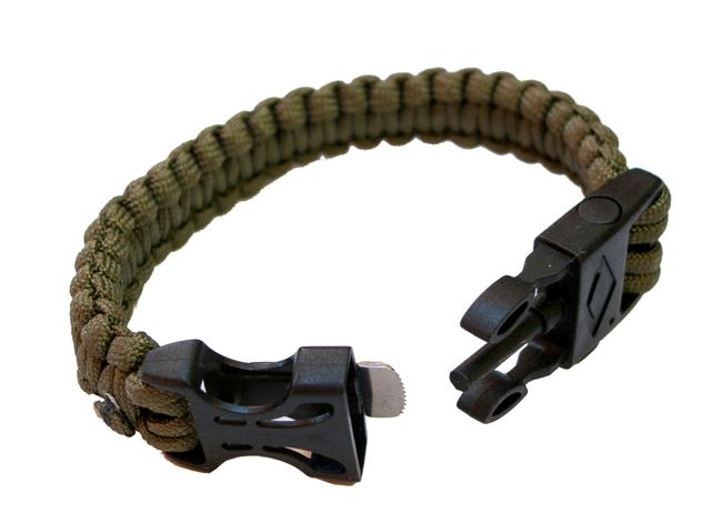 De armband is gemaakt van drie meter paracord, wat erg handig kan zijn in noodsituaties.