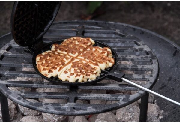 Maak wafels boven het open vuur of op de barbecue met dit wafelijzer.