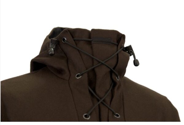 ? de capuchon is verstelbaar d.m.v. een koord en biedt bescherming tegen wind en weer