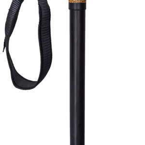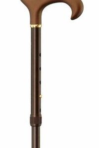 Elegante, slanke stok met gladde DERBY-handgreep van glanzend verchroomde ABS-kunststof. Met chromen ring en zwart hoogglans gelakte steel van inlands beuken.