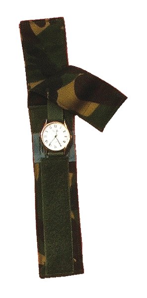 Ontwikkeld om uw horloge te beschermen. Zorgt er voor dat u uw positie niet bloot kunt geven door schittering van uw horlogeglas en ’s nachts niet door lichtgevende wijzers of wijzerplaat.. Sluit met klittenband. Gemaakt van sterk camouflage materiaal. Niet voor oversized horloges.