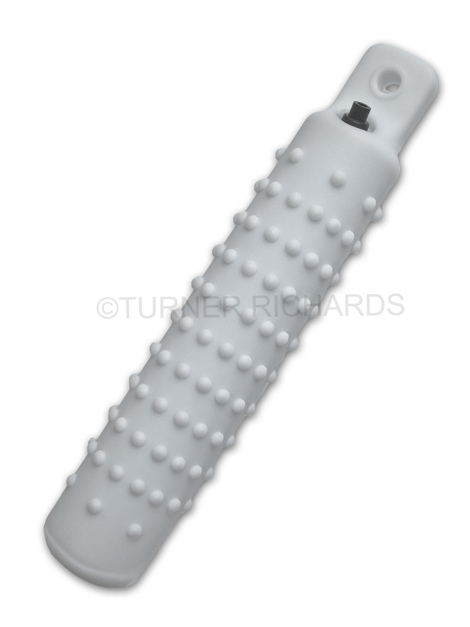 Het oppervlak met zijn vele nopjes is goed vast te pakken maar voorkomt te hard bijten.