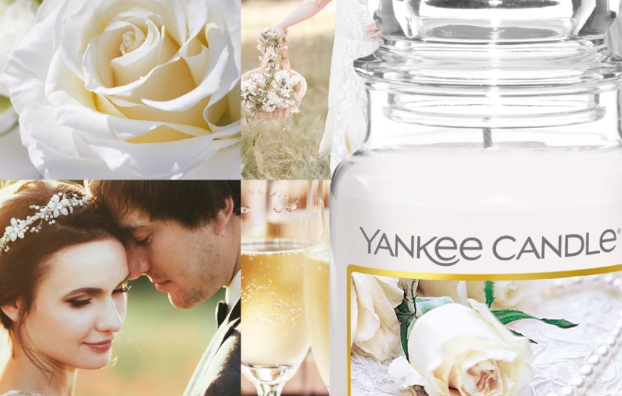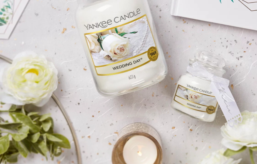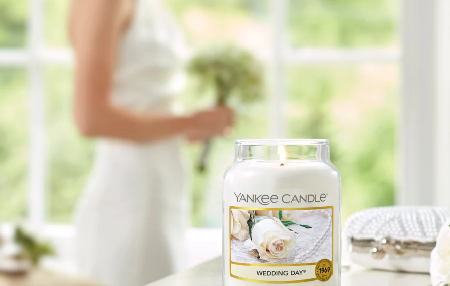 Yankee Candle Wedding Day geurkaars in een grote glazen apothekerspot. Ideaal voor een van de meest bijzondere momenten van het leven… een verfijnde en rustgevende mix van bloemige noten versterkt door subtiel fruit.