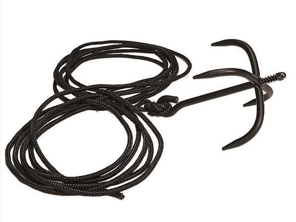 Stalen werphaak met plm. 10 mtr groen touw. De haak is demonteerbaar.