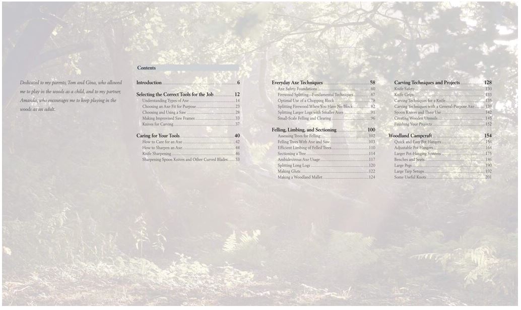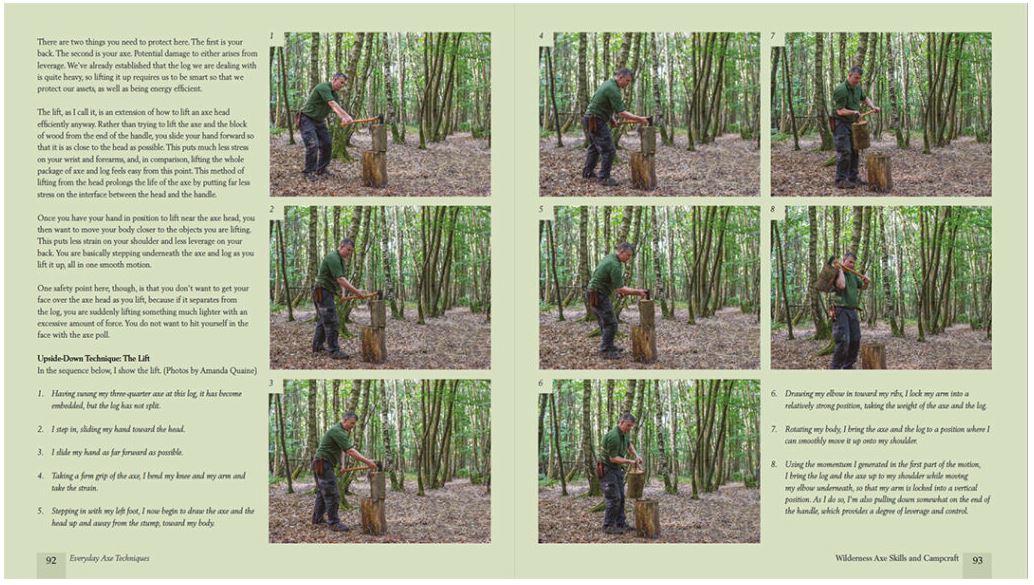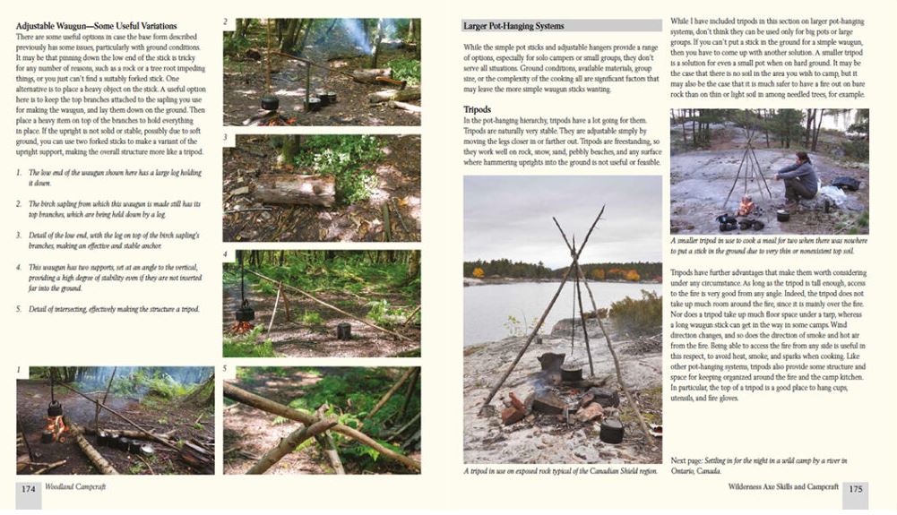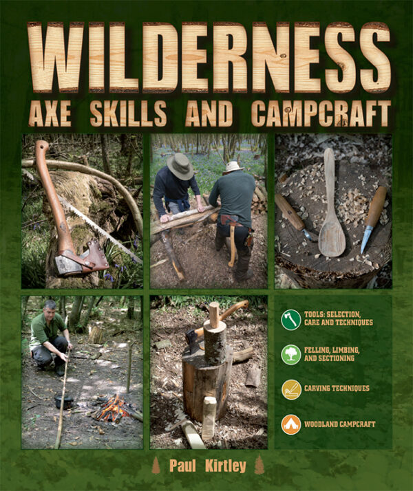 Wilderness Axe Skills & Campcraft door Paul Kirtley. The book starts with how to select the correct tools for the task, caring for the tools, then applying everyday axe techniques. Next, the book presents larger scale tasks such as felling, limbing, and sectioning trees, before progressing onto skills for smaller-scale, more refined projects, including carving techniques. While much of what is in the book is directly applicable in and around camp, the final chapter is dedicated to woodland campcraft, including campcraft projects large and small. The aim is for you to be able to develop effective and timesaving campcraft skills using materials freely available in the woods, including pot hangers, tripods, cranes, and a variety of group camp set-ups.