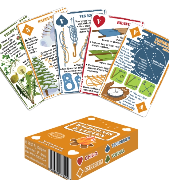 Handig en leerzaam! Een handig en handzaam 2-in-1 product ter aanvulling van je volgende avontuur. Voor avonturiers die van Bushcraft, Scouting & Survival houden. Een compleet survival gidsje wat comfortabel in je broekzak past, gedrukt op een set speelkaarten.