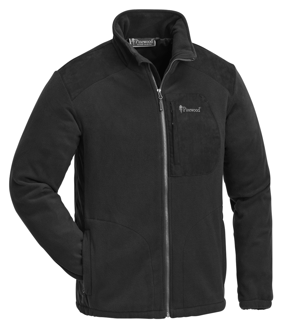 Pinewood Wildmark Fleece Vest. Wind- en waterdichte fleece jas in stil en zacht 240 grams anti-pluis fleece. Twee zijzakken, binnenzak en borstzak met opening voor antenne/koord. Verstelbare zoom.
