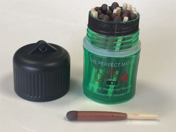 Deze Survival Matches zijn door de NATO goedgekeurd en worden compleet geleverd met een waterdichte container met 25 lucifers en 3 Striker-vlakken, waaronder een die wordt beschermd tegen vocht door het verzegelde deksel.