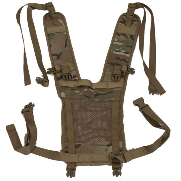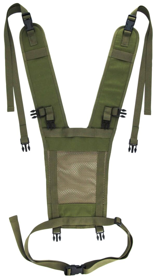 Karrimor Yoke System, het draagsysteem om zijtassen van Karrimor en andere PLCE compatible zijtassen als daypacks te dragen. The PLCE (Personal Load Carriage Equipment) Yoke System allows you to convert 2 (PLCE) side pockets into a daysack.