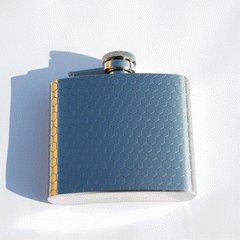 Roestvrijstalen zakfles 148 ml. De dop zit vast aan de fles met een handig scharnier, dus die dop kun je niet verliezen.