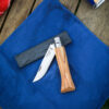 Deze compacte wetsteen van Opinel is gemaakt van steen uit Lombardy (Italië), wat bekend staat voor het bevatten van quartz en mineralen. – Past in elke jaszak. – Afmetingen: 100 x 22 x 5.5mm.