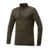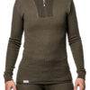 Heerlijk warm hemd met rits en lange mouwen. Merino wollen badstof aan de binnenkant, polyester en polyamide aan de buitenkant. De achterkant is extra lang.